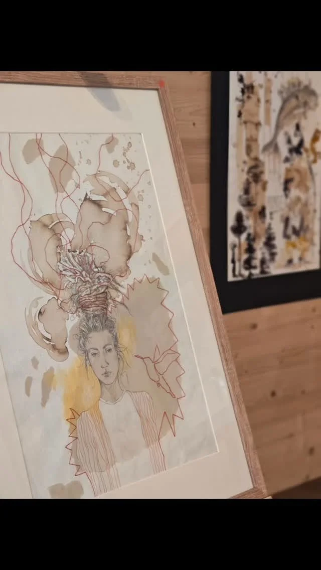 In jede künstlerische Arbeit stecke ich einen Teil von mir selbst, die durch Detailverliebtheit und die Verbindung von Gesichtern mit floralen und tierischen Elementen ein surreales Abbild meiner Gedankenwelt widerspiegelt. Kaffee und Tinte lasse ich dabei frei ineinander fließen und arbeite mit den entstandenen Formen die Portraits mit Bleistift aus.