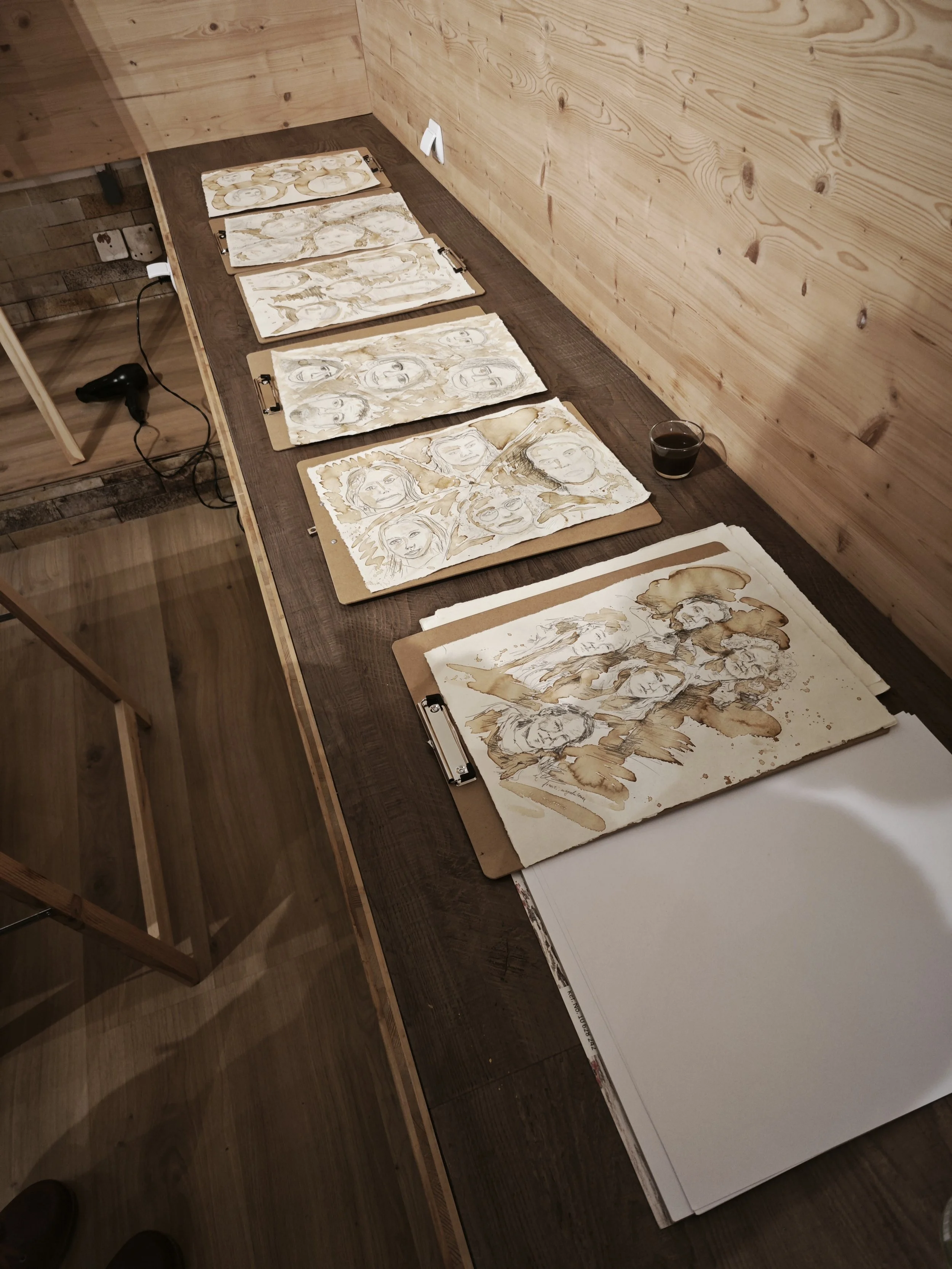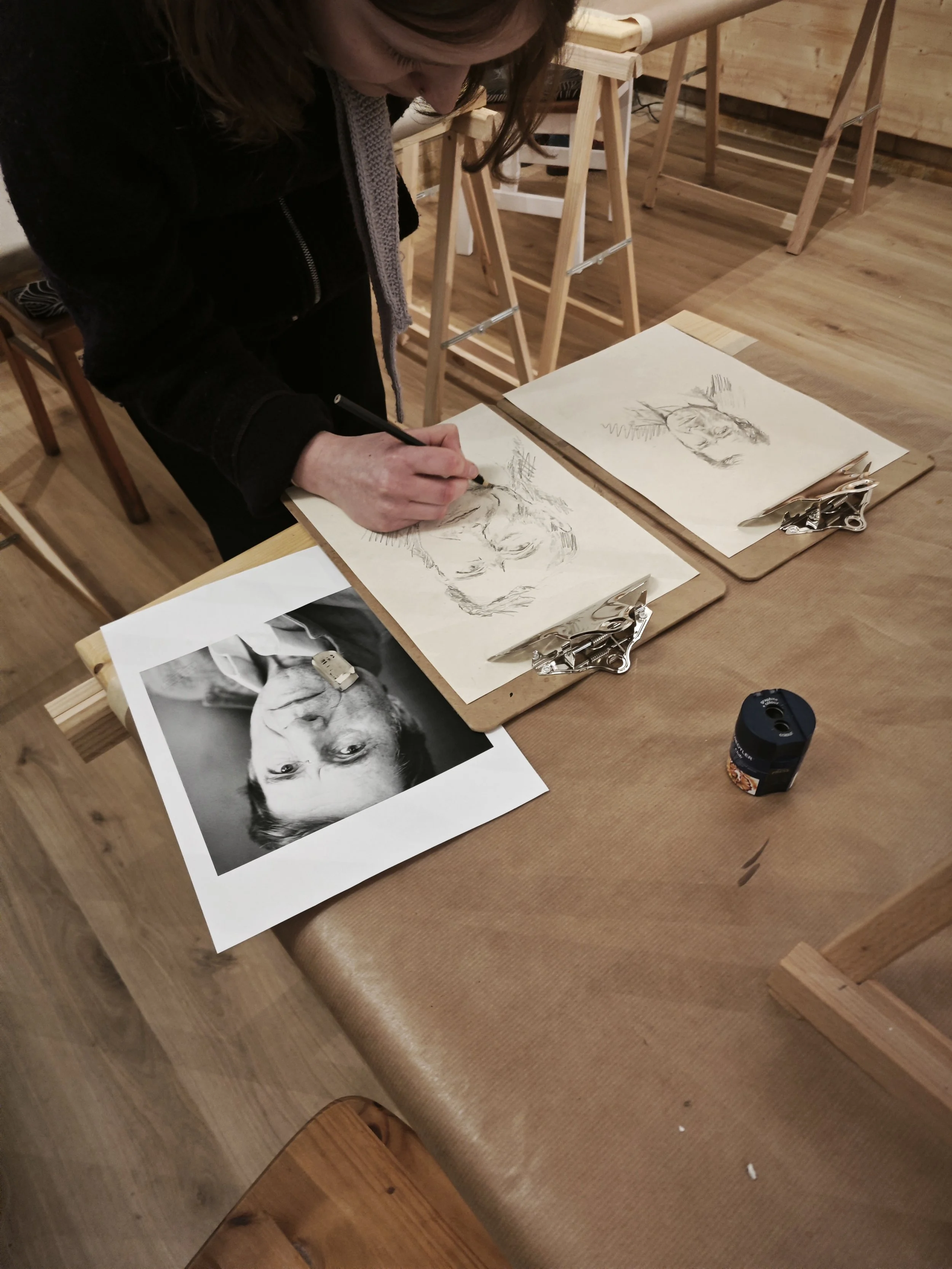 Eine tolle Idee hatte eine Freundin einer Damen, die zum 60sten Geburtstag einen Kunstkurs bei mir geschenkt bekommen hat. Da sie selbst sehr gerne zeichnet, sind sie und ihre Familie eine weite Strecke gefahren und wir haben einen schönen gemeinsamen Abend zeichnet miteinander verbracht. Zuerst durften wir uns gegenüber sitzen und nacheinander abzeichnen. Danach haben wir Udo Jürgens zusammen gezeichnet, der vor 60 Jahren ganz oben in den Charts war. Es war eine Freude und so schön zu sehen, wie alle sich mit eingebracht haben. Der Kaffee durfte natürlich auch nicht fehlen. Vielen Dank, dass ihr so kreative Ideen für Kunstkurse habt.